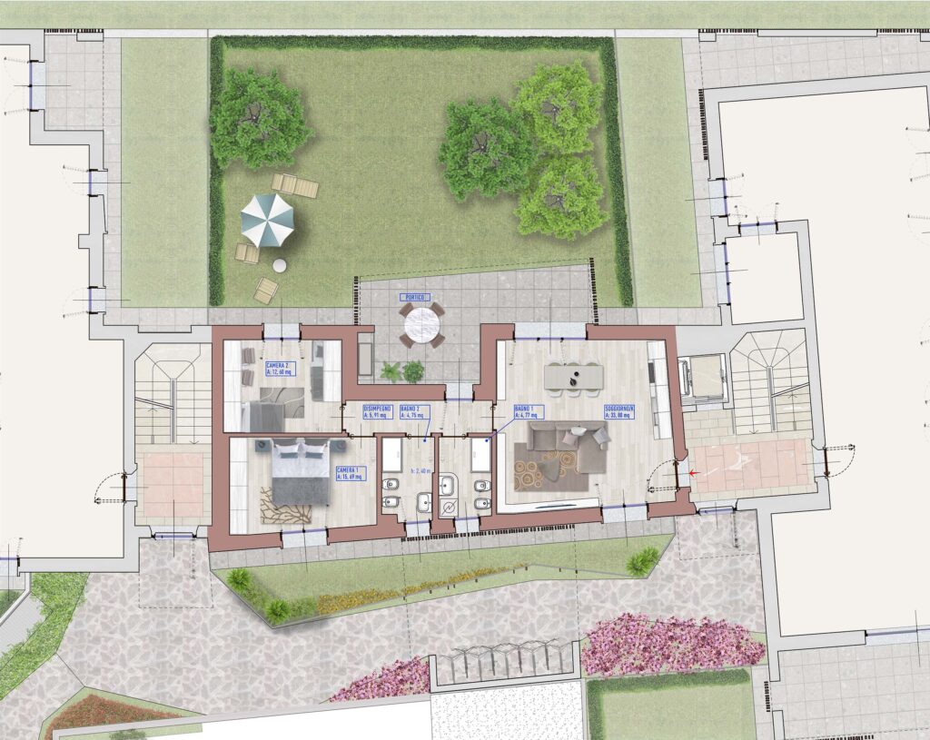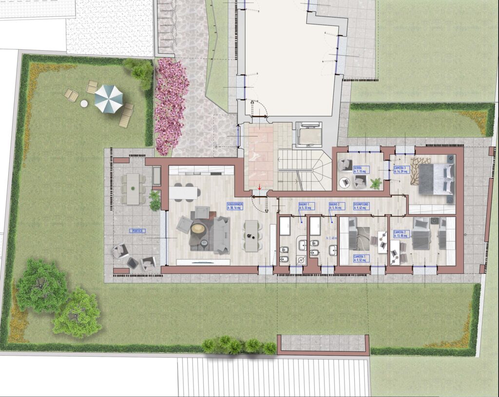 A3 – Ampio quadrilocale con giardino, portico e camera padronale con bagno privato