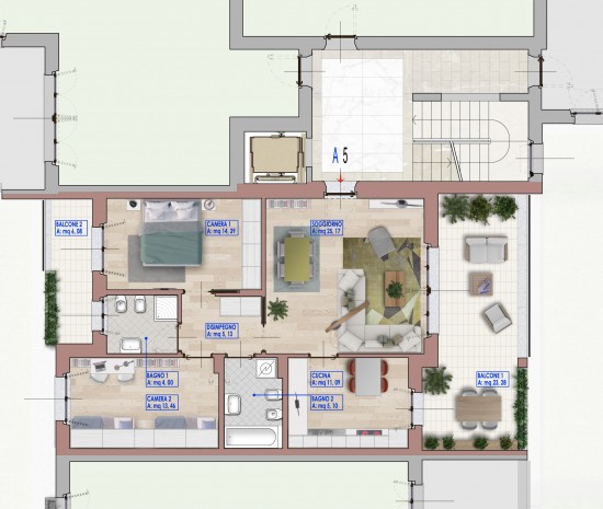 Apartment A5 – Three-room apartment – Lecco