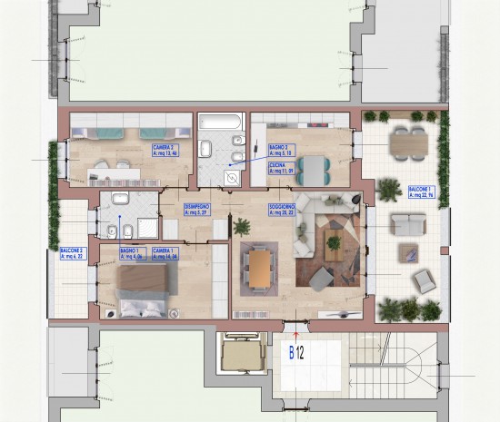 Apartment B12 – Three-room apartment – Lecco