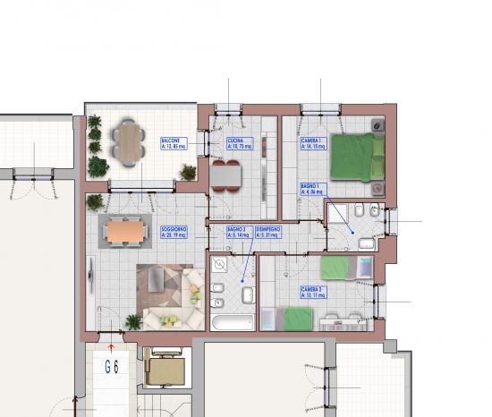 Apartment G6 – Three-room apartment – Carnate