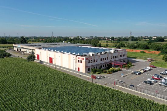 Il nuovo insediamento industriale comprende la palazzina degli uffici, la sistemazione esterna e le opere di urbanizzazione utili ad allacciare il sito con la viabilità principale. La scacchiera cromatica alleggerisce il rigore geometrico della struttura e riprende il colore rosso impiegato per le finiture, assegnando coerenza e dinamismo alle architetture.